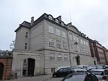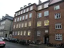 Nørrebro Lilleskole (No. 34-36) is a self-owning primary school. The building is the former home of the Jewish Carolineskolen. It was built as Copenhagen's Jewish boys' school which had until then been based in Skindergade. The school was merged with the city's Jewish girls' school under the name Carolineskolen in 1945. It relocated to a former stockings factory on Bomhusvej in the Ryvangen Quarter of Østerbro in 1974.[2]