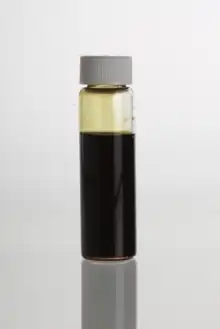 The viscous oil is light to very dark green to dark red in colour depending on the thickness of the observed sample. The oil appears green in thin layers and red in thick layers, an optical phenomenon called dichromatism.[7] Pumpkin seed oil is one of the substances with the strongest dichromatism. Its Kreft's dichromaticity index is −44.[8] When used together with yoghurt, the oil turns bright green and is sometimes referred to as "green-gold".