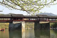 Qinghua Rainbow Bridge (simplified Chinese: 清华彩虹桥; traditional Chinese: 清華彩虹橋; pinyin: Qínghuá Cáihóng Qiáo) was a large stone beam bridge in the town of Qinghua, Wuyuan County, Jiangxi, China.[1][2] The bridge went across the Le'an River.[1][2] The bridge was 140 m (459 ft) long and had 3.1 m (10 ft) wide, with 4 piers and 5 bridge openings.[1][2]