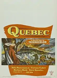 Quebec is a 1951 American historical drama film directed by George Templeton and written by Alan Le May. Set in 1837, it stars John Drew Barrymore in a fictional account of the Patriotes Rebellion. The popular uprising in Lower Canada, now Quebec, sought Democratic reforms, and happened around the same time as a similar revolt in Upper Canada, now Ontario.