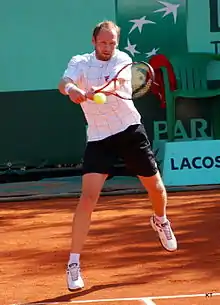 Rainer Schüttler (German pronunciation: [ˈraɪnɐ ˈʃʏtlɐ]; born 25 April 1976) is a German former professional tennis player. Schüttler was the runner-up at the 2003 Australian Open and a semifinalist at the 2008 Wimbledon Championships. He won an Olympic silver medal in doubles at the 2004 Athens Olympics, and achieved a career-high ranking of world No. 5 in April 2004.