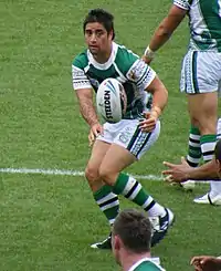 He played at representative level for the New Zealand Māori before moving to Britain and playing for the Exiles, and then the England national team. Chase played in the National Rugby League for Australian clubs Wests Tigers and St. George Illawarra Dragons before playing in the Super League for English clubs Castleford Tigers (Heritage № 894) and Salford Red Devils. Chase was the 2011 Albert Goldthorpe Medal winner and was selected in the England squad for the 2011 Gillette Four Nations.[6] On 4 October 2011, Chase was presented with the Man of Steel Award whilst playing for Castleford Tigers. On 4 August 2017 it was announced that he had been suspended a result of a failed drug test from the previous month and on 23 November 2017 the UKAD confirmed a two-year ban from rugby. On 14 May 2019, it was announced Chase would return to rugby league with Doncaster until the end of the season.[7]