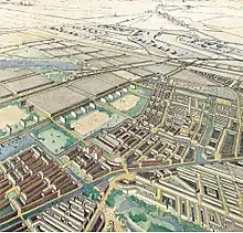 In 1929, Cornelis van Eesteren made a provisional plan for the expansion of Amsterdam, which contained a park between the existing and planned neighbourhoods. In 1935, Van Eesteren made the General Expansion Plan which determined the current size and location of the park based on guidelines of 5.3 m2 (57 sq ft) of park area and 11.2 m2 (121 sq ft) of recreational area per inhabitant.[2]