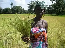 Rhamphicarpa fistulosa is an annual facultative hemi-parasitic forb species.[8] It is a very widespread species in seasonally flooded wetlands in tropical and sub-tropical Africa, and it is increasingly important as a parasitic weeds in rain-fed lowland rice systems in Africa,[9][10][11][12][13] where yield losses of more than 60% are typically reported.[14] It is particularly a problem in rice fields prone to temporary, uncontrolled flooding.[14][15] Management strategies against Rhamphicarpa fistulosa are limited;[16][17] hand-weeding, permanent flooding, fertilizer applications and the use of herbicides are currently known, effective control measures.[11][18] In addition, a number of high-yielding, resistance and tolerant rice varieties has recently been identified.[19]