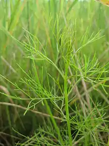 Rhamphicarpa fistulosa (common name: rice vampireweed) is a flowering plant species in the family Orobanchaceae (formerly in the family Scrophulariaceae)[1] - and the genus Rhamphicarpa.[2][3][4][5][6] The plant is pale-green but can turn reddish towards maturity. It has needle-like leaves and white flowers with long corolla tubes.[7] The flowers only open after sunset and are supposedly pollinated by night moths.[8] The plant has a broad distribution in Africa (from Guinea to Madagascar and from Sudan to South Africa) and can also be found in New Guinea and northern Australia.[6]