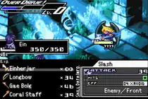 Once all the preparations are made, battle begins. Turn order is decided by a countdown based on agility, last move used and formation. A player character may select from as many as eight different skills: one normal skill for each item, and, if they are well trained with that item and the OverDrive Gauge is sufficiently filled, a secondary, more interesting OverSkill. Using a skill, however, reduces how many more times that item can be used, as Riviera employs a Fire Emblem-styled system of item endurance allowing the item to be used only a certain number of times before it breaks entirely. The OverDrive Gauge fills throughout battle, as characters receive and deal damage, and with certain skills. At various levels, characters can use different skills, because certain skills require more of the gauge be filled. There are five levels of skills for player characters: Level 0 skills that may be used whenever and without training; Levels 1 through 3 skills, which require training and deplete that amount of the OverDrive Gauge; and Execution Level skills that may be used at any level of OverDrive Gauge fullness, but will shatter the gauge for the battle, and are only obtained through the story. Enemies have a similar gauge with three levels: Normal, Rage and Max. At Normal they may only use normal attacks. At Rage they may use Rage and Normal attacks, but the latter depletes the gauge. At Max, they may use all three, but only Max skills will deplete the gauge, and will deplete it fully. Enemies also have Etc. attacks, ranging from healing to transformation, that may be used at any time.