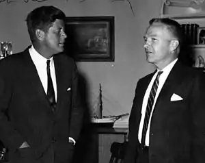 In the 1966 U.S. Senate election, Duncan was the Democratic candidate for the seat vacated by retiring Senator Maurine B. Neuberger.[1] While Duncan strongly supported President Johnson's Vietnam War policies, his Republican opponent, Governor Mark Hatfield, was an outspoken critic.[3] The differences between Duncan and Hatfield on the war would produce one of the great splits in the modern Oregon Democratic Party.[4] The state's senior U.S. Senator, Wayne Morse—a staunch Democratic opponent of the Vietnam War—endorsed Hatfield over fellow Democrat Duncan,[5] an act that infuriated Democratic Party regulars.[6] This factor, along with Hatfield's statewide popularity, gave Hatfield a narrow victory.[7] In 1967, Duncan moved to Portland where he lived until 1974,[2] returning to the practice of law.[1]