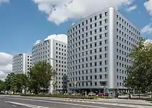 Most of the buildings of Służewiec are offices, with the neighbourhood containing one of the biggest complexes of office buildings in Poland, with 83 office buildings within its boundaries in 2019.[2][3][6] Many of them include headquarters of many domestic companies, and branches of many multinational corporations.[4][5]