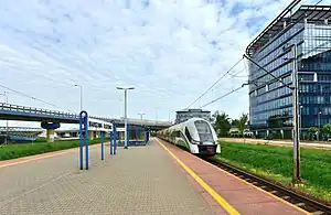 In Służewiec, near Sasanki Street, is located Warszawa Służewiec, a railway stop at the railway line no. 8 between stations Warszawa Zachodnia and Kraków Główny, operated by the Polish State Railways.[34][35] The station is located near Sasanki Street. In 2021, it was used by 657 000 passengers, with the average number of passengers each day being 1 800.[36]