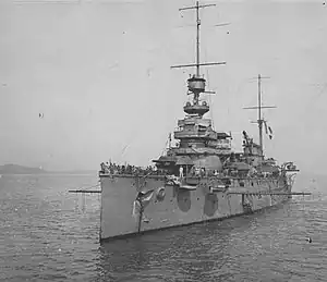 On 18 December 1918 Flandre was in Corfu when wind caused her to drag her anchor until she collided with the French cruiser Victor Hugo. Flandre's hull was damaged, and she was repaired at Toulon.[6]