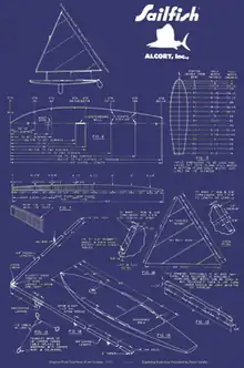 Early Sailfish were offered in the form of boat plans for the backyard boat builder along with an option to purchase the boat from the Alcort shop, fully assembled and ready to sail.