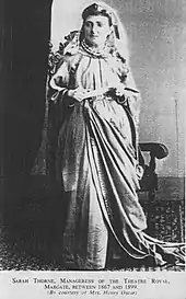 Sarah Thorne (10 May 1836 – 27 February 1899) was a British actress and actress-manager of the 19th century who managed the Theatre Royal at Margate for many years. She ran a school for acting there which is widely regarded as Britain's first formal drama school.[1] The Sarah Thorne Theatre Club in Broadstairs is named in her memory.[2]