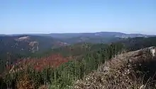 Today the upper slopes of the Schadenbeeksköpfe are mainly covered by spruce whilst, lower down, deciduous woods also occur. In the year 1596 they were still completely covered by beech.[1]