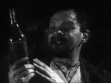 The topos of the wandering Jew is used several times throughout the movie. In the opening scene of the film a non-diegetic Yiddish song about the “interminable Jewish wanderings” is heard and complemented by Pinya's muttering: “Here we are traveling, and traveling / Maybe we'll never get there....” Senderovich concludes: “The family's journey is supposedly intended to put an end both to the eternal Jewish displacement and to unproductive Jewish existence represented by Pinya.”[23] The motif of the wandering Jew and his characterization as a lutftmensch (“man of air”) who works with his head instead of his hands are merged in Pinya's figure. But both are not represented as natural features, but as a particular habitus based on the socio-economical living conditions of Jews before the revolution. As Pinya says at the end of the movie: “We never had enough bread. Gold is money, and money is everything. I don't understand anything.” Pinya's whole character, from his optical appearance, as a capitalist with bowler hat and pocket watch, over his gestures that always signify weighing up different options, to his greedy and restless character, he is featured with Semitic stereotypes. Hence the movie doesn't falsify these stereotypes, but contextualizes their allegedly actual existence through their relation to social conditions. This makes Pinya rather into a tragic than into a malicious figure.