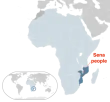 The Sena people are a Bantu ethnolinguistic group with origins in northwestern region of Mozambique , Sofala Province and Zambezia Province.[1][2] They are also found in Malawi[3] and Zimbabwe near their respective borders with Mozambique.[1]