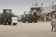 To reopen the airport, on 16 March 2011, a U.S. Air Force MC-130P Combat Shadow from the 17th Special Operations Squadron infiltrated a team from the 320th Special Tactics Squadron from Kadena Air Base into Matsushima, Miyagi, then moved overland to the airport. With assistance from Japan Self-Defense Forces, enough debris was removed in a few days to allow an MC-130H Combat Talon II aircraft to begin landing with more equipment, personnel, and supplies. After further cleanup with help from additional US and Japanese military units, on 20 March 2011, a US Air Force C-17 landed at the airport with 40 metric tons of relief supplies.[8] Thereafter, the airport served as a transit location for airlifted supplies, totaling approximately 2 million tons of such items as blankets, water, and food. The US military set up and operated air traffic control operations for the airport until shortly before commercial traffic resumed, at which point air traffic control responsibility was resumed by Japanese controllers.[9]
