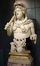 September has none of the archaic festivals that are marked in large letters for other months on extant Roman fasti. Instead, about half the month is devoted to the Ludi Romani, "Roman Games", which developed as votive games for Jupiter Optimus Maximus ("Jupiter Best and Greatest"). The Ludi Romani are the oldest games instituted by the Romans, dating from 509 BC. On the Ides of September (the 13th), Jupiter was honored with a public banquet, the Epulum Jovis.[2] A nail-driving ritual in the temple marked the passing of the political year during the Republican era, and in the earliest period, the consuls took office on the Ides of September.[3] The month was often represented in art by the grape harvest.