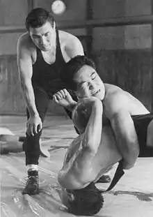 Shozo Sasahara (笹原 正三, Sasahara Shōzō, July 28, 1929 – March 5, 2023) was a Japanese freestyle wrestler who won a world title in 1954 and an Olympics gold medal in 1956.[2] He was the flag bearer for Japan at the 1956 Games. During his career Sasahara won approximately 200 bouts.[1] After retiring from competitions he worked as a national coach. His trainees included Osamu Watanabe.[3]