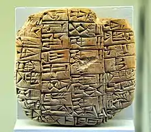 In 1926 it was visited by Raymond P, Dougherty during his archaeological survey of the region.[7] In March and April 1931, a joint team of the American Schools of Oriental Research and the University of Pennsylvania excavated Shuruppak for a further six week season, with Erich Schmidt as director and with epigraphist Samuel Noah Kramer being prompted by reports of illicit excavations in the area. They were able to stratify the major occupation levels as Jemdat Nasr (Fara I), Early Dynastic (Fara II), and Ur III empire (Fara III). There was an "innundation event" between Fara I and Fara II.[3][8] The excavation recovered 87 tablets and fragmentsâmostly from pre-Sargonic timesâbiconvex, and unbaked. The tablets included reference to Shuruppak enabling confirmation of the sites original name.[9]