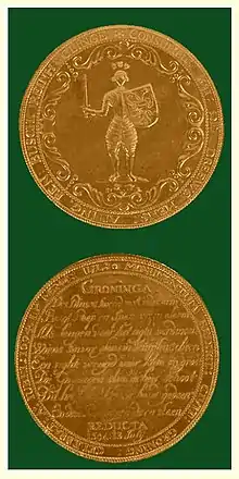 A medal was presented to the newly-elected Dutch city council, the members of the State Assembly, and the officers involved in the capture of Groningen.[4] Groningen remained united with Ommelanden but did not become a province until 1795.