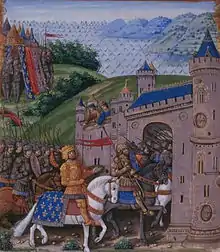 The French did not take any initiative to attack the city because they lacked large enough siege engines to break the walls of Saint-Jean-d'Angély. The town was surrounded and trade routes blocked to starve the English garrison into surrendering. An English relief force led by the Seneschal of Gascony, John de Cheverston and Arnaud-Amanieu, was intercepted by a French detachment of the siege army.[1] Although the English were victorious, Cheverston was unable to break through to Saint-Jean-d'Angély.