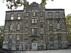 Built in 1899, this historic structure is a three-story, three-bay, stone building that sits on a raised basement in the Gothic-style. It features a central projecting bay with stepped gable and battlement-like motif.[2]