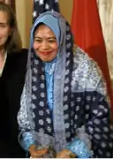 Siti Musdah Mulia (born 1958) is an Indonesian women's right activist and professor of religion.[1] She was the first woman appointed as a research professor at the Indonesian Institute of Sciences, and is currently a lecturer of Islamic political thought at the School of Graduate Studies at Syarif Hidayatullah State Islamic University.[2][1][3] Since 2007, Musdah has served as chairperson of the NGO Indonesian Conference on Religion and Peace, which aims to promote interfaith dialogue in Indonesia.[2][4] She also served as director of the Megawati Institute, a think-tank established by former president Megawati Soekarnoputri.[5]
