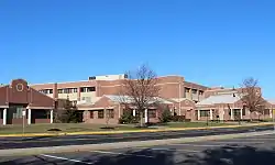 The current 360,000-square-foot (33,000 m2) building was built in 1997 on an 80-acre (32 ha) campus at the corner of Stouts Lane and Ridge Road due to overcrowding issues and paid for as part of a $51 million project (the equal of $93 million in 2022).[8] With the opening of the new high school facility, the original building was repurposed for grades 6-8 and is now Crossroads South Middle School.[9] The annex which is connected by a two-level indoor bridge on levels 2 and 3 was built in 2003–04, on the side of Stouts Lane.