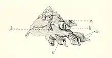 | Drawing of Spirotropis carinata on a specimen of Xenophora pallidula | |