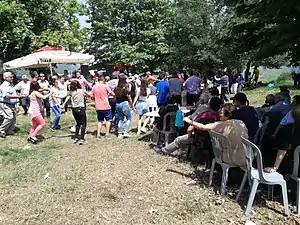 The Orthodox monastery was built on the walls of a much older temple. An Albanian Heritage Foundation team, directed by architect Reshat Gega, conducted research on the monastery, performing excavations and restoration over a period of 20 years.[4] Evidence the team found included Hellenic stones from the 3rd-4th centuries BC, confirming the connection with the capital of the Epirote League at Phoenice (modern Finik) located 3 km from the monastery. One of the decorative stones bears the inscription "Menelau", presumed to be a reference to the Spartan King Menelaus whose brother Agamemnon led the assault during the Trojan War.