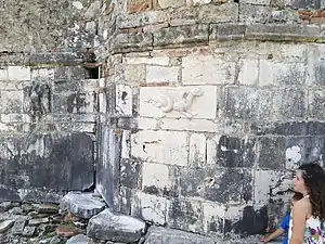 - (b) The site of Butrint (Roman Buthrotum) has a great gate, referred to as the Lion Gate, whose headstone depicts a bull, possibly Paris, being wrestled to the ground by a lion - possibly Agamemnon.[7]