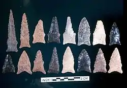 With over 150 projectile points recovered in the 1960 season alone, the site provided invaluable information on numerous early cultures in Alabama. The projectile points were divided into "fifty-six taxonomic types and six residual categories or provisional types."[5][6] Much of the information was incorporated into the Handbook of Alabama Archaeology.[7]