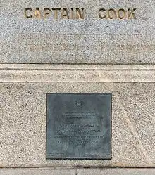 "This tablet was affixed by the Yorkshire Society of NSW as their tribute to the memory of Captain James Cook. 1908"