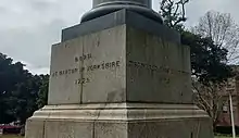 There is an inscription on each side of the statue's plinth, in addition to a plaque on the front side. These read as follows:[3]