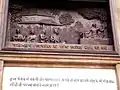 The statue is 72 feet (22 m) high with base and is made of bronze. It was sculpted by Ram Sutar's firm and is located on the western end of historic Gandhi Maidan, in front of St. Xavier's High School, Patna.[3] It shows Mahatma Gandhi standing affectionately with two children. The pedestal is 24 feet (7.3 m) high with four landmark events of Gandhi's life, Dandi March in 1930, Quit India movement in 1942, Champaran Satyagraha in 1917 and charkha as symbol of Gandhi is inscribed on it in large letters.[4]