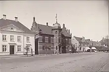 In the 15th century Stege's town hall was located at the end of Storegade.[1] It was destroyed by Swedish troops in 1659 and subsequently demolished.[2] It is not clear when a new town hall was built.[3]