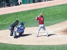 On September 1, 2008, he hit for the cycle against the St. Louis Cardinals, becoming the first player to do so at Chase Field.[2] Batting leadoff, Drew singled in the first inning, tripled in the third and homered in the fifth against Cardinal starter Joel Piñeiro. He added a ground-rule double in the seventh against reliever Kyle McClellan. He was the fourth to hit for the cycle in 2008, and on the same day Adrián Beltré of the Seattle Mariners became the fifth. This was the first time that two players had hit for the cycle on the same day since 1920.[3] He finished the season batting .291, with a career-high 21 home runs.