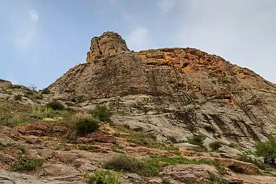 The Sulayman Mountain (Kyrgyz: Сулайман-Тоо, also known as Sulaiman-Too, Sulayman Rock, or Sulayman Throne) is the only World Heritage Site located entirely in the country of Kyrgyzstan.[lower-alpha 1][1] It is located in the city of Osh and was once a major place of pre-Muslim pilgrimage. The rock rises abruptly from the surrounding plains of the Fergana Valley and is a popular place among locals and visitors, with a splendid view.