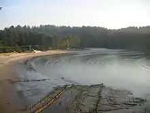The park is one of three along the Cape Arago Highway, which runs along the Pacific Ocean west of U.S. Route 101. Sunset Bay State Park is about 1 mile (1.6 km) north of Shore Acres State Park and about 2 miles (3 km) north of Cape Arago State Park.[4] A hiking trail links Sunset Bay to Shore Acres.[5]