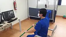Telerehabilitation (or e-rehabilitation[1][2][3] is the delivery of rehabilitation services over telecommunication networks and the internet. Telerehabilitation allows patients to interact with providers remotely and can be used both to assess patients and to deliver therapy. Fields of medicine that utilize telerehabilitation include: physical therapy, occupational therapy, speech-language pathology, audiology, and psychology. Therapy sessions can be individual or community-based. Types of therapy available include motor training exercises, speech therapy, virtual reality, robotic therapy, goal setting, and group exercise.