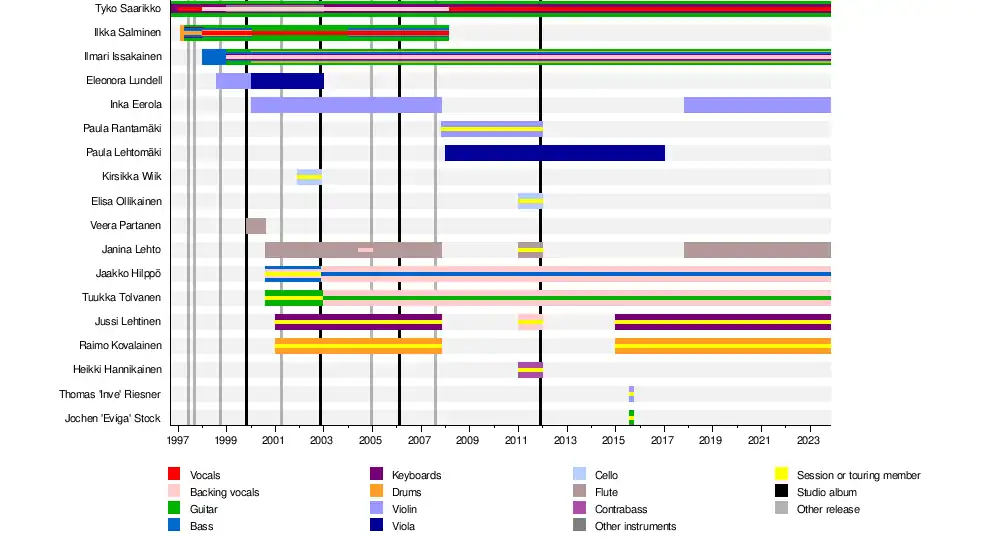 - Ilmari Issakainen – bass (1998–present), guitar (1999–present), piano (1999–present), percussions (1999–2007), backing vocals (1999–present), drums (2000–present)