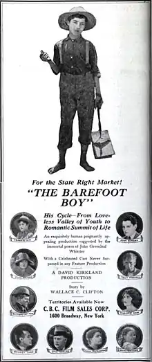 The Barefoot Boy is a 1923 American silent drama film directed by David Kirkland and starring John Bowers, Marjorie Daw, and Sylvia Breamer.[1] The film is based upon a poem of the same name by John Greenleaf Whittier. The film was released by the CBC Film Sales Corporation, which would later become Columbia Pictures.[2]