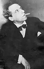 The Bathhouse (Баня, Banya) is a play by Vladimir Mayakovsky written in 1929, for the Meyerhold Theatre. It was published for the first time in the November, No.11 issue of Oktyabr magazine and released as a book by Gosizdat in 1930. The play premiered at the People's House's Drama Theatre, in Leningrad on January 30, 1930.[1] The "6-act drama with the circus and the fireworks" (according to the subtitle), satirizing bureaucratic stupidity and opportunism under Joseph Stalin,[2] evoked strong criticism in the Soviet press, particularly from the Russian Association of Proletarian Writers.[3]
