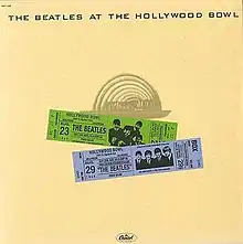 The Beatles at the Hollywood Bowl is a live album by the Beatles, released in May 1977, featuring songs compiled from three performances recorded at the Hollywood Bowl in August 1964 and August 1965.[2] The album was released by Capitol Records in the United States and Canada and on the Parlophone label in the United Kingdom. It was the band's first official live recording. A remixed, remastered, and expanded version of the album, retitled Live at the Hollywood Bowl, was released on 9 September 2016, on CD for the first time, to coincide with the release of the documentary film The Beatles: Eight Days a Week, directed by Ron Howard.[3][4]