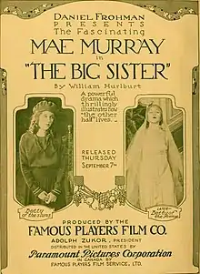 The Big Sister is a lost[1] 1916 American drama silent film directed by John B. O'Brien and written by Harvey F. Thew. The film stars Mae Murray, Matty Roubert, Harry C. Browne, Ida Darling, Armand Cortes and Tammany Young. The film was released on September 7, 1916, by Paramount Pictures.[2][3]