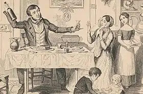 - Detail from a reproduction which appeared in Timothy Shay Arthur's Temperance tales, or, six nights with the Washingtonians (1848). The copies are signed "Pilliner", and no credit was given to Cruikshank.[8]