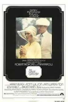 The Great Gatsby is a 1974 American romantic drama film based on the 1925 novel of the same name by F. Scott Fitzgerald. The film was directed by Jack Clayton, produced by David Merrick, and written by Francis Ford Coppola. It stars Robert Redford in the title role of Jay Gatsby, along with Mia Farrow, Sam Waterston, Bruce Dern, and Karen Black.