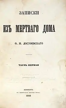 The House of the Dead (Russian: Записки из Мёртвого дома, Zapiski iz Myortvovo doma) is a semi-autobiographical novel published in 1860–2[1] in the journal Vremya[2] by Russian author Fyodor Dostoevsky. It has also been published in English under the titles Notes from the House of the Dead, Memoirs from the House of the Dead and Notes from a Dead House, which are more literal translations of the Russian title. The novel portrays the life of convicts in a Siberian prison camp. It is generally considered to be a fictionalised memoir; a loosely-knit collection of experiences, events and philosophical discussion based on Dostoevsky's experiences as a prisoner, organised around theme and character rather than plot. Dostoevsky spent four years in a forced-labour prison camp in Siberia following his conviction for involvement in the Petrashevsky Circle. This experience allowed him to describe with great authenticity the conditions of prison life and the characters of the convicts.