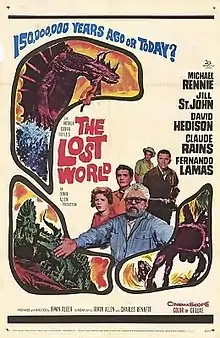 The Lost World is a 1960 American fantasy adventure film directed by Irwin Allen, loosely based on the 1912 novel of the same name by Arthur Conan Doyle. Shot in De Luxe Color and CinemaScope, the film's plot revolves around the exploration of a plateau in Venezuela inhabited by cannibals, dinosaurs, carnivorous plants, and giant spiders. The cast includes Claude Rains, David Hedison, Fernando Lamas, Jill St. John, and Michael Rennie.