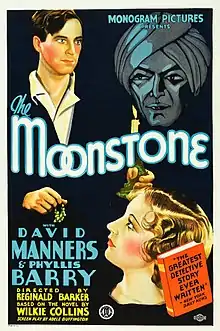 The Moonstone is a 1934 American mystery film directed by Reginald Barker and starring David Manners, Phyllis Barry, Gustav von Seyffertitz and Jameson Thomas. It is an adaptation of the 1868 novel The Moonstone by Wilkie Collins. The film retains the book's British location, but uses a contemporary 1930s setting rather than the Victorian era of the original. It is one of three film versions of the novel, which include silent versions in 1915 and 1909, although a number of television and radio adaptations have been made.